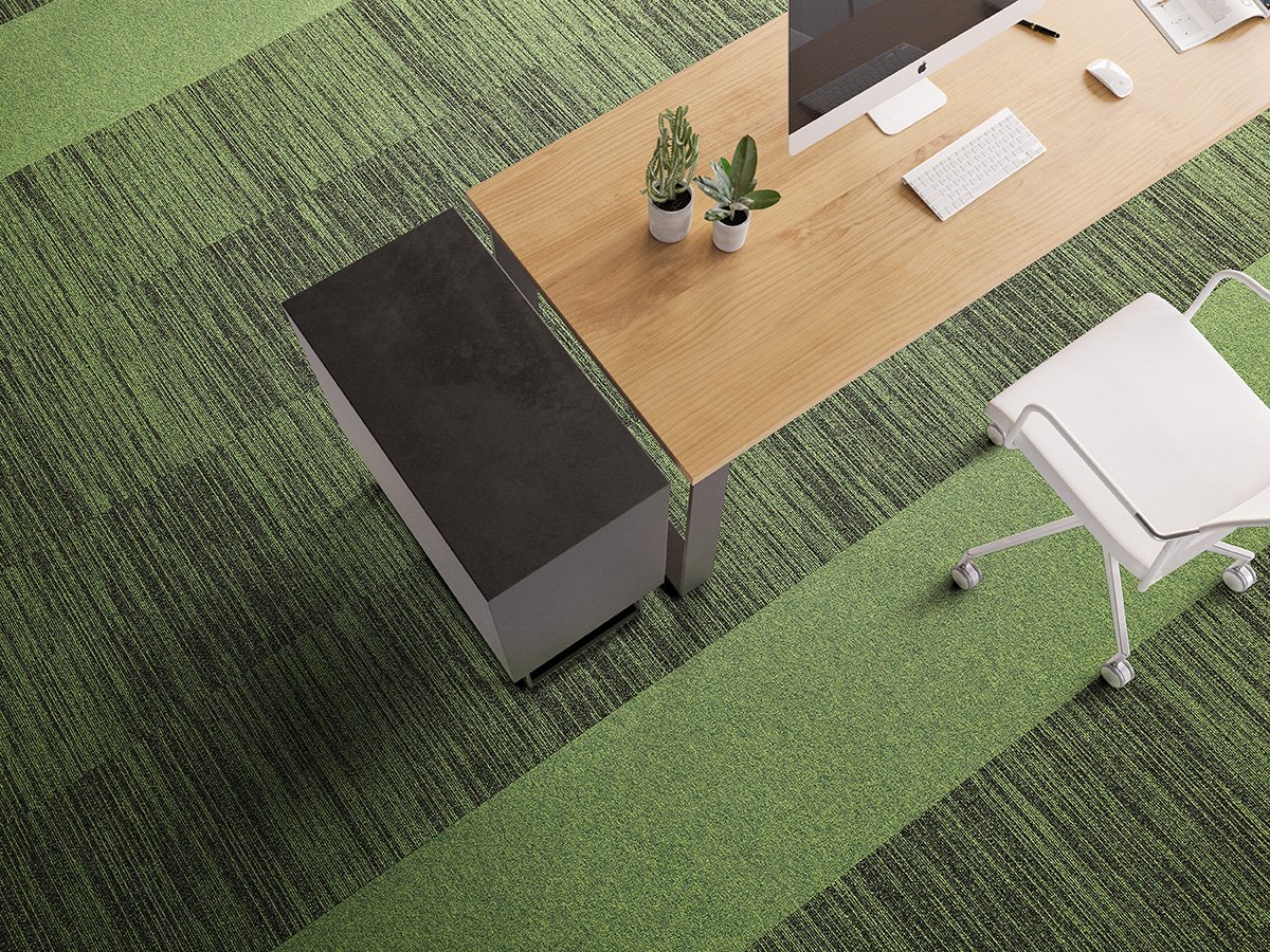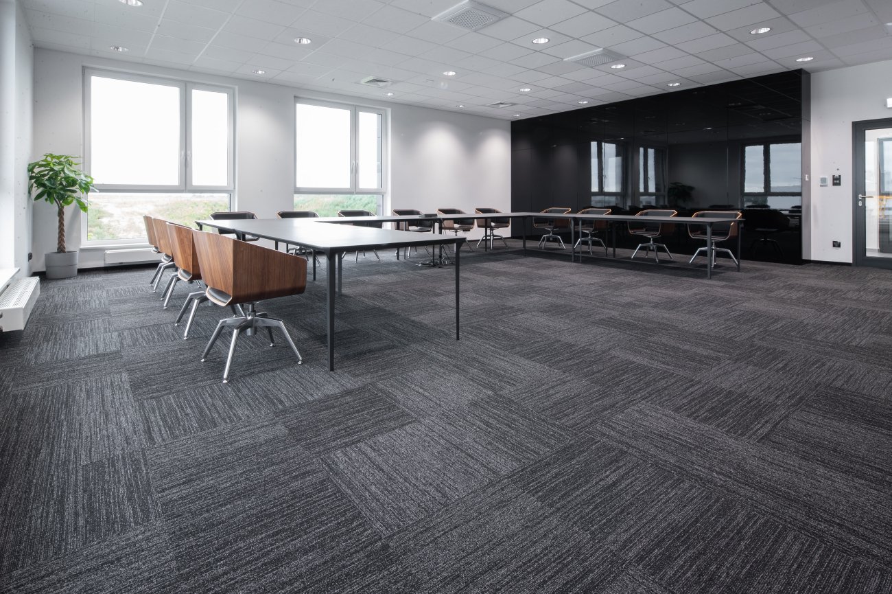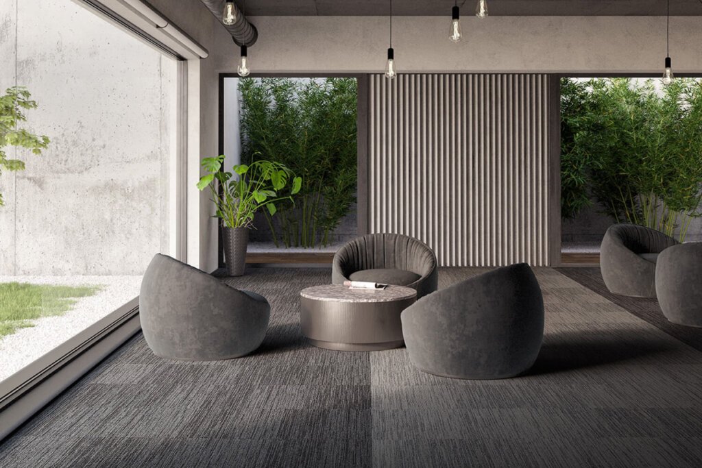 Alfombra modular de diseño belga que combina líneas verticales en contraste para crear un efecto código de barras dinámico. Sus patrones geométricos precisos permiten composiciones modulares creativas mientras mantienen máxima resistencia al tráfico comercial intenso, ideal para proyectos corporativos que exigen distinción visual.