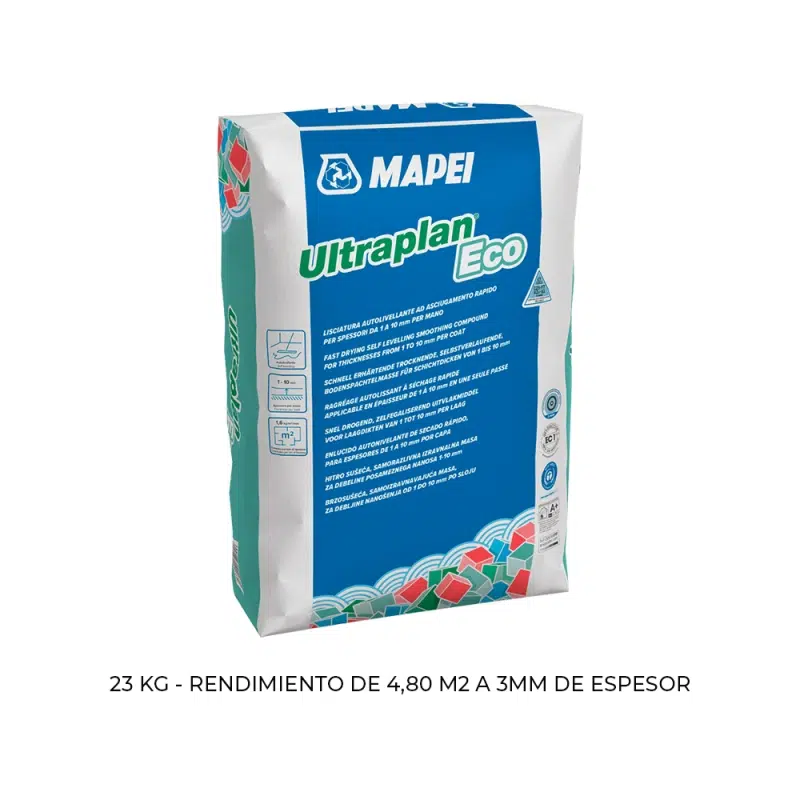 Ultraplan Eco se utiliza para nivelar y eliminar diferencias de espesor de 1 a 10 mm en soportes nuevos o existentes, haciéndolos idóneos para la colocación de cualquier tipo de pavimento, en locales donde se requiera una elevada resistencia a las cargas y al tráfico, es especialmente apropiado para soportar el tráfico de sillas de ruedas.